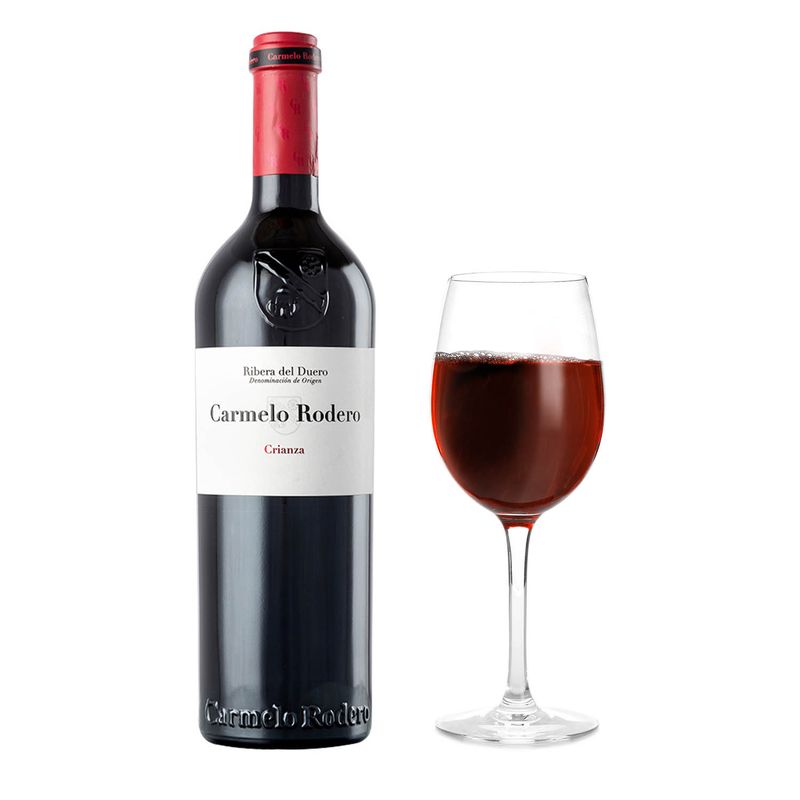 Tinta del país (tempranillo) y un pequeño aporte de Cabernet Sauvignon constituyen el rico coupage que es carmelo rodero crianza.
