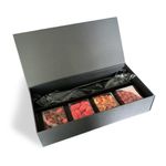 Caja de regalo rellenas de una selección exquisita de snacks, que incluyen chilitos y chocolates.ideal para complementar con una botella de vino o destilados, haciendo de esta una experiencia única para sus clientes.