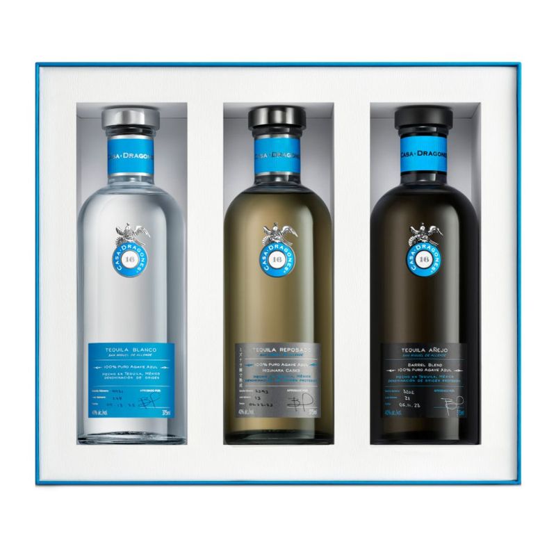 Historia breve del producto: La colección para los amantes del tequila. Esta elegante colección incluye tres estilos de tequilas únicos elaborados en pequeños lotes, en la presentación de 375ml: Casa Dragones An?ejo Barrel Blend, Casa Dragones Reposado Mizunara, y Casa Dragones Blanco. Cada colección está lista para obsequiar en un estuche de regalo azul.