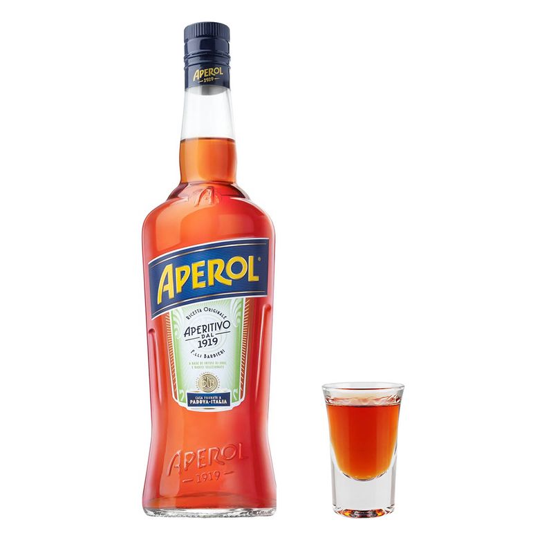 El Aperol es una bebida italiana con baja graduación alcohólica, sus ingredientes son la naranja amarga, ruibarbo, gentiana, cinchona, entre otros. Es el componente esencial del Aperol Spritz.