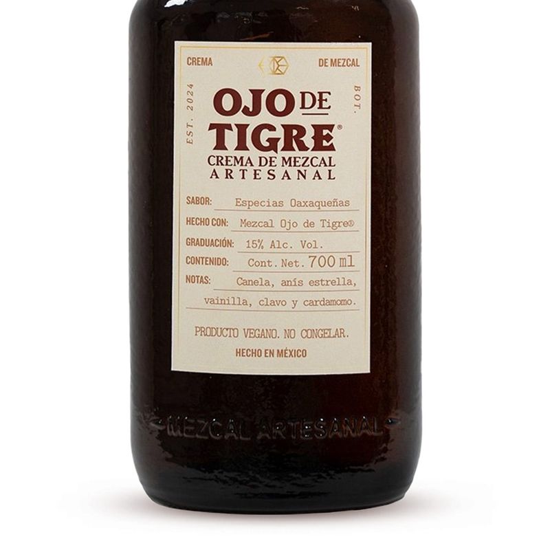 Ojo de Tigre Crema es "LA CREMA" que busca dar un giro innovador a la categoría de cremas, así como elevar la experiencia a través de un líquido que muestra el característico sabor ahumado del mezcal con el sabor tradicional de las especias oaxaqueñas.