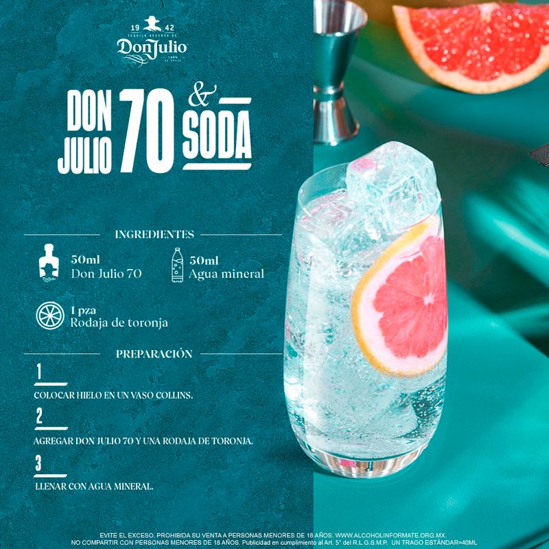Disfruta de Don Julio 70, el primer tequila añejado cristalino del mundo cuenta con un añejamiento en barricas de roble blanco, el cual destaca por sus tonos frutales, así como cítricos con un toque dulce de vainilla y caramelo, ligeramente amaderado. Don Julio 70 es conocido por su sabor suave, con final limpio, ideal para disfrutarse solo. Exclusivo para mayores de edad. El abuso en el consumo de este producto puede resultar nocivo para la salud. Vista: Cristalino. Olor: Suaves notas a agave cocido con toques a vainilla. Sabor: Deliciosas notas a vainilla, agave cocido y pimienta.