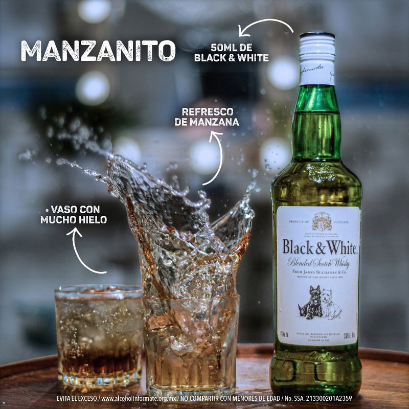 Black & White es una mezcla suave y equilibrada que utiliza los mejores whiskies escoceses de Speyside y Highland. Perfecto para acompañar con botanas de todo tipo cacahuates, papas saladas, platillos ligeros. Exclusivo para mayores de edad. El abuso en el consumo de este producto puede resultar nocivo para la salud. Vista: Ámbar. Olor: Aromas herbales con un toque ahumado. Sabor: Notas a caramelo con toques de roble.